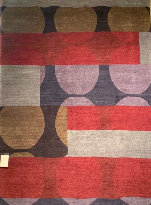 This is an Eclipse design, made in Tibet. It is in the 9′ by 12′ category of the rugs at our showroom. It is on sale right now! It looks amazing on hardwood floors, marble floors or tiles, and you can take this home today for a week just to try it out! Call us today at (336) 454-7771 to figure out how we can make that happen!