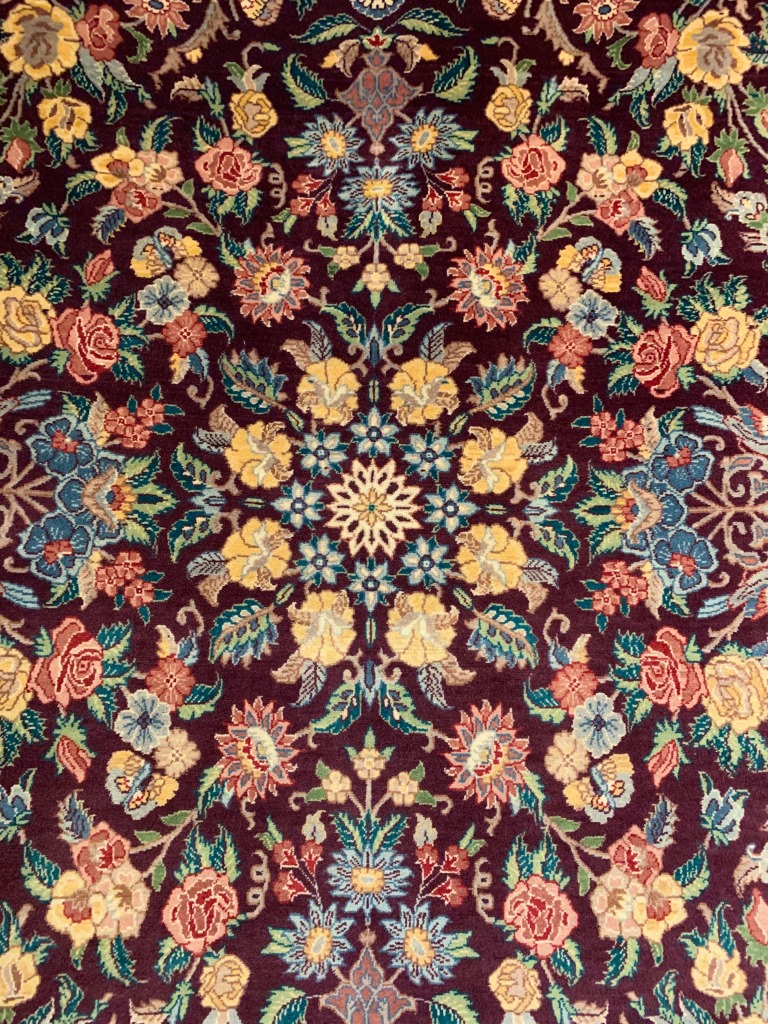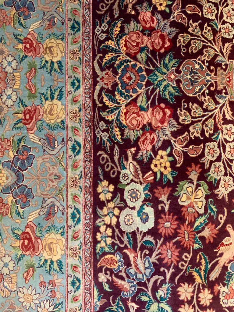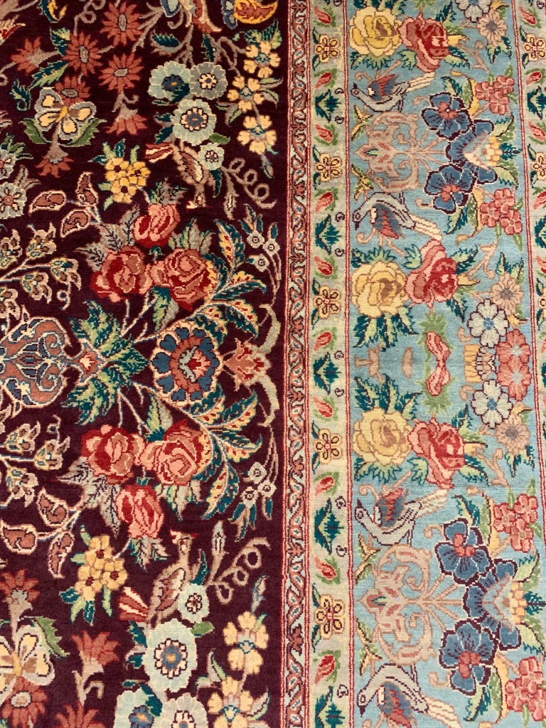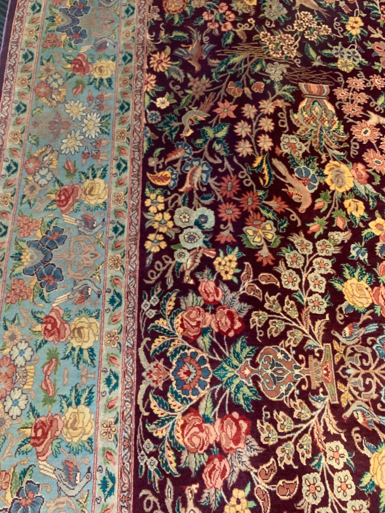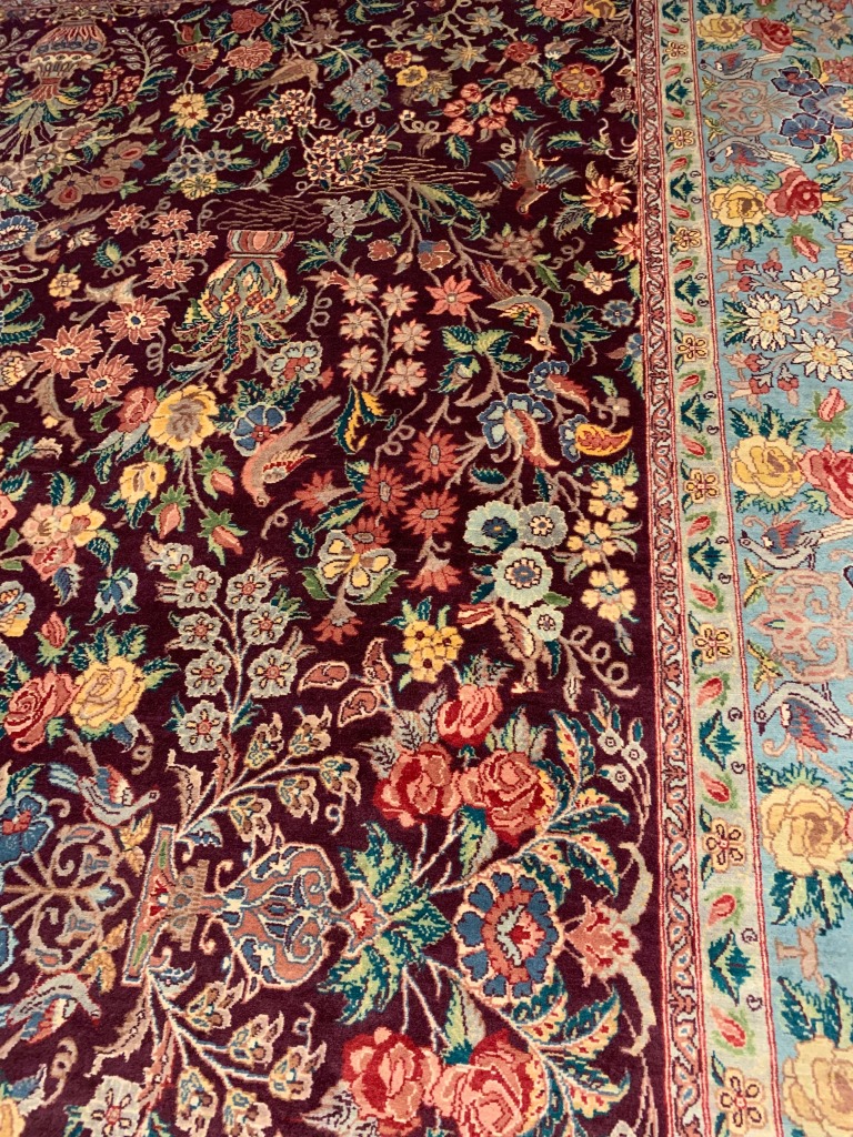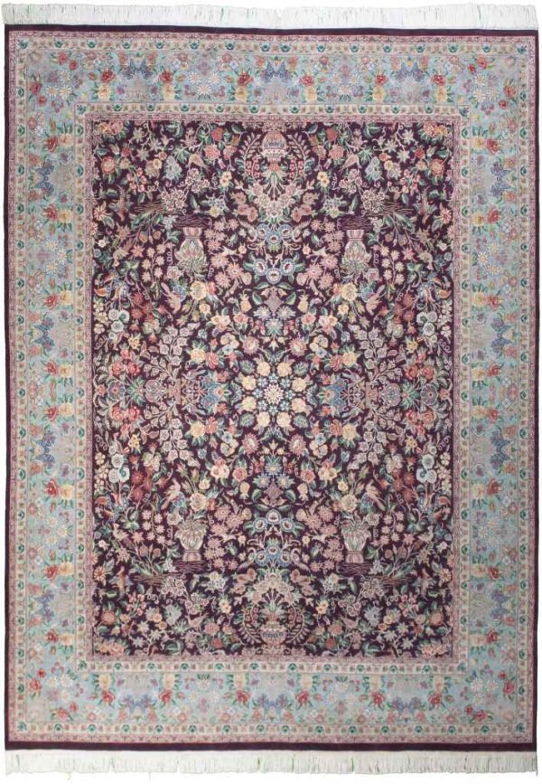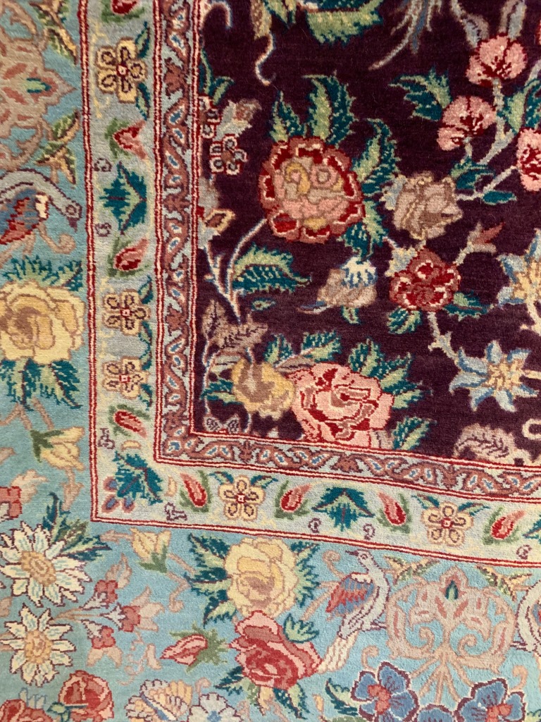 Made in Pakistan with the amazing design of Tabriz. The Type is Pak 16/16 making it a very high knot count. The Background color is Plum with the Border color being Light Blue.